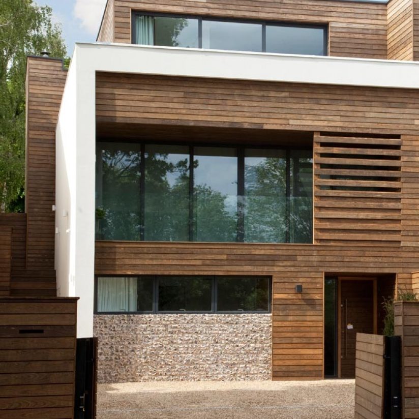 Panel para pared o techo en WPC, color caoba con una garantía directa de 15 años.
