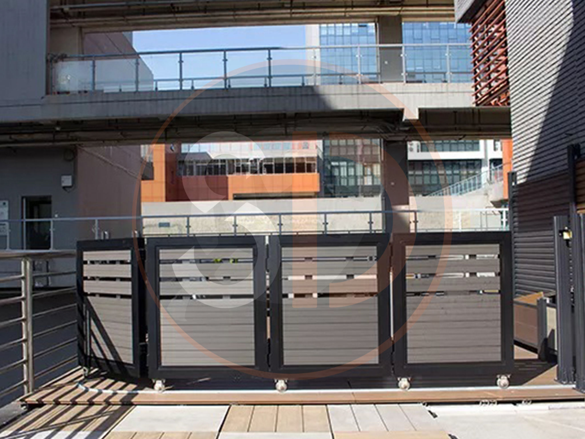 Esta puerta deslizante se aplica a materiales compuestos de plástico de madera en lugar de barras de metal tradicionales, dando una apariencia más natural.
